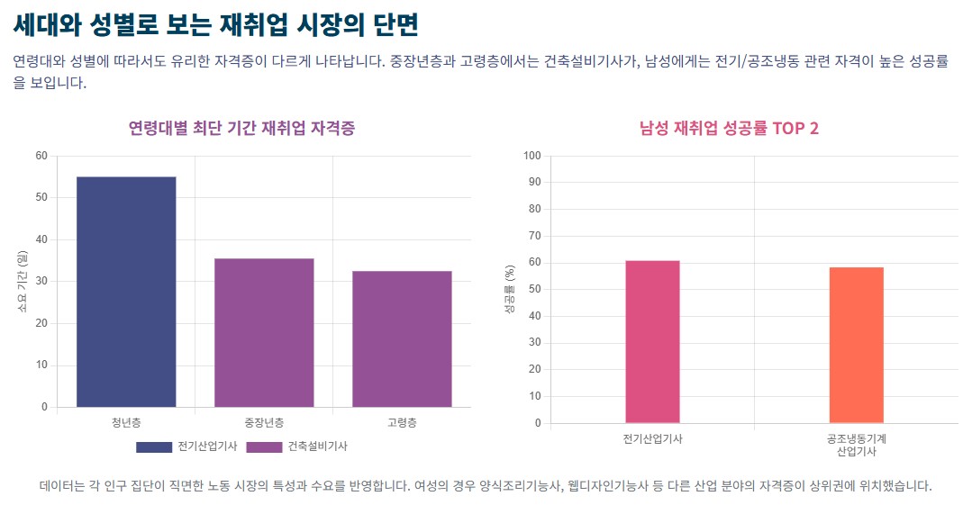 청년은 전기산업기사, 중장년층은 건축설비기사의 반응이 좋다.