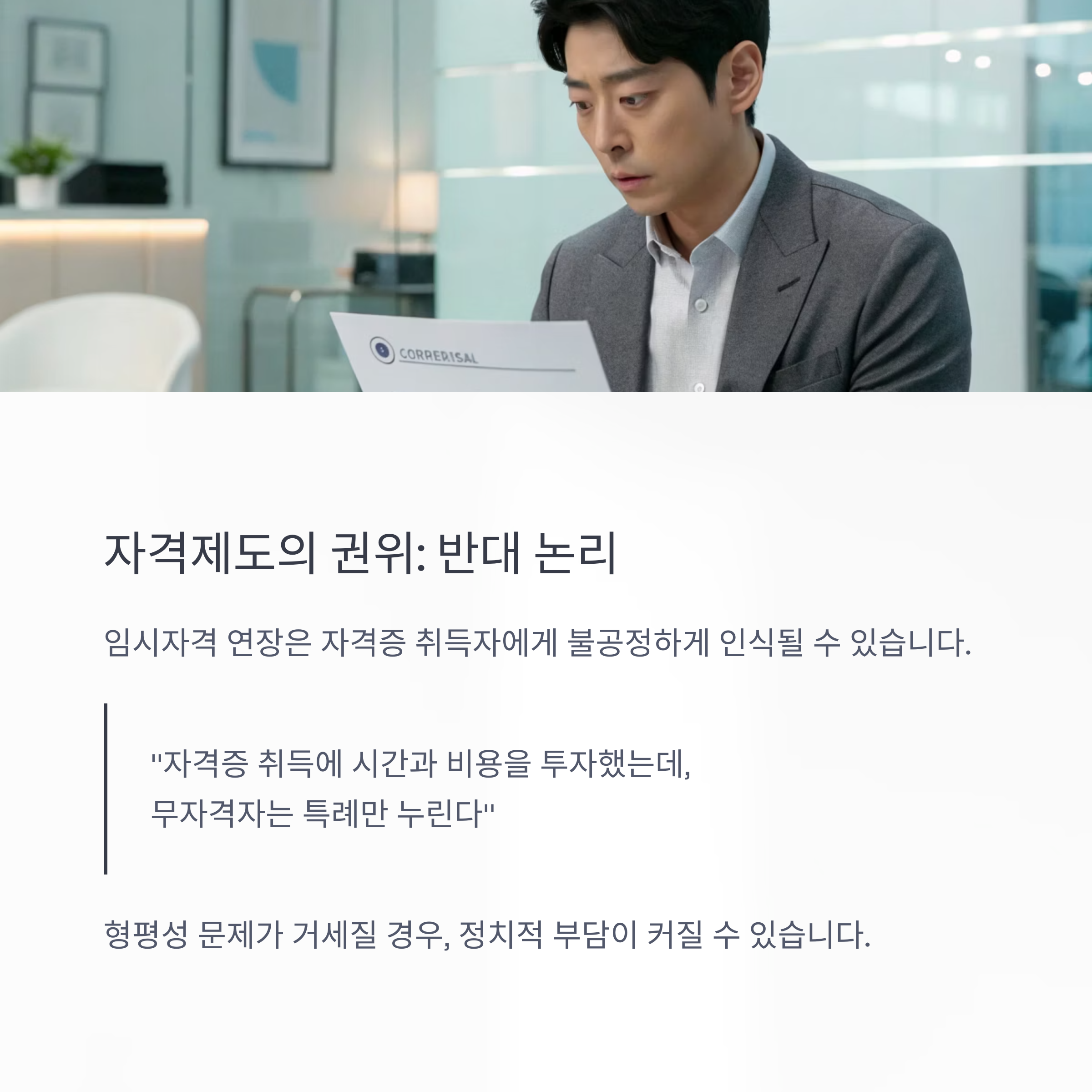 임시자격 연장은 신규 자격 보유자에게 불공정하게 비춰질 수 있다.