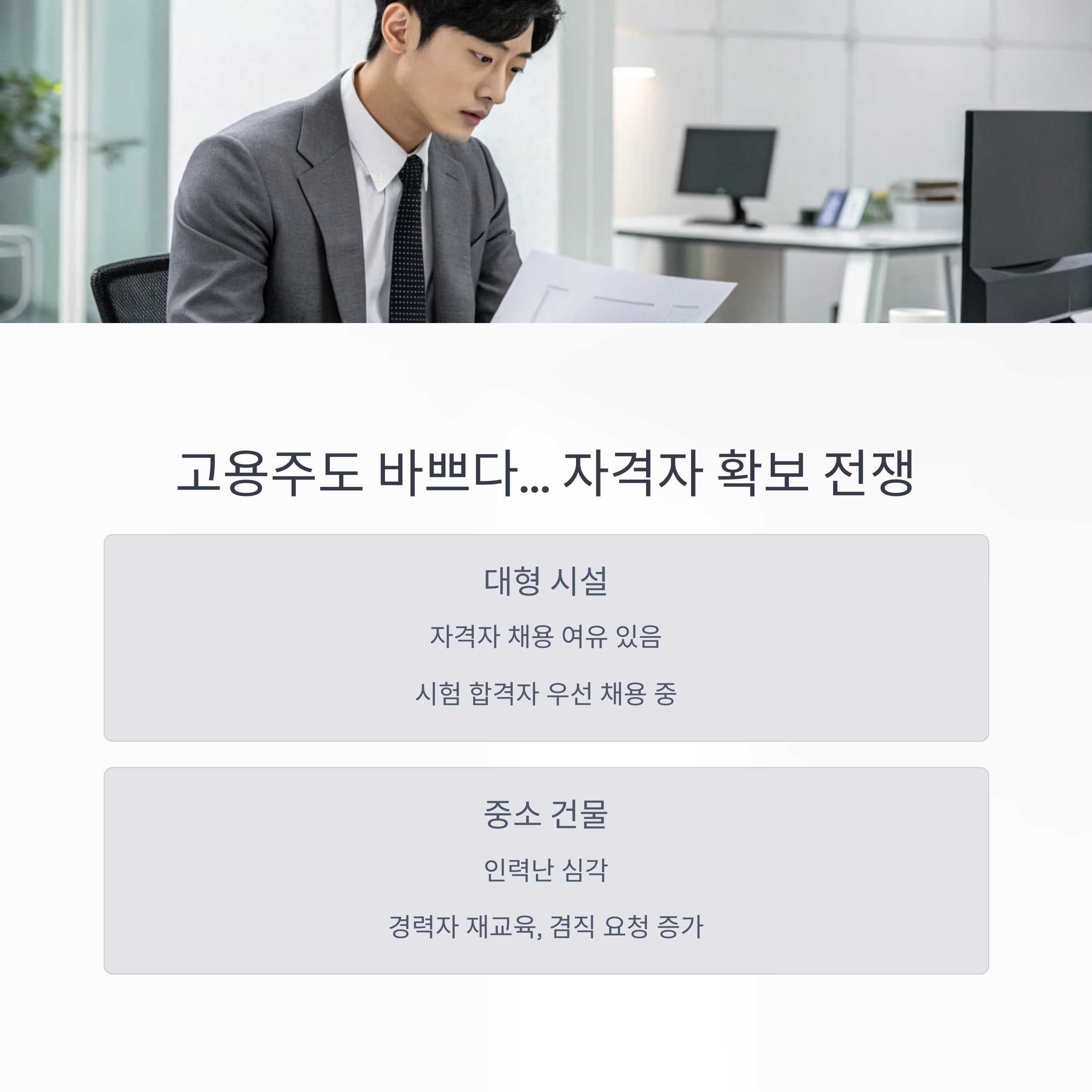 | 중소 건물 | 인력난 심각 | 경력자 재교육, 겸직 요청 |