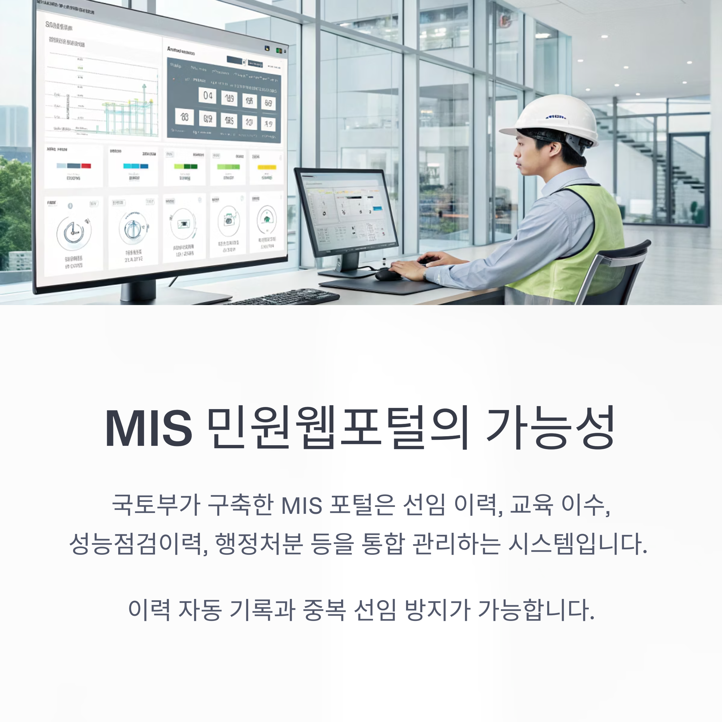 이 플랫폼은 선임 이력, 교육 이수, 성능점검 이력, 행정처분 등을 통합 관리하는 시스템이죠.