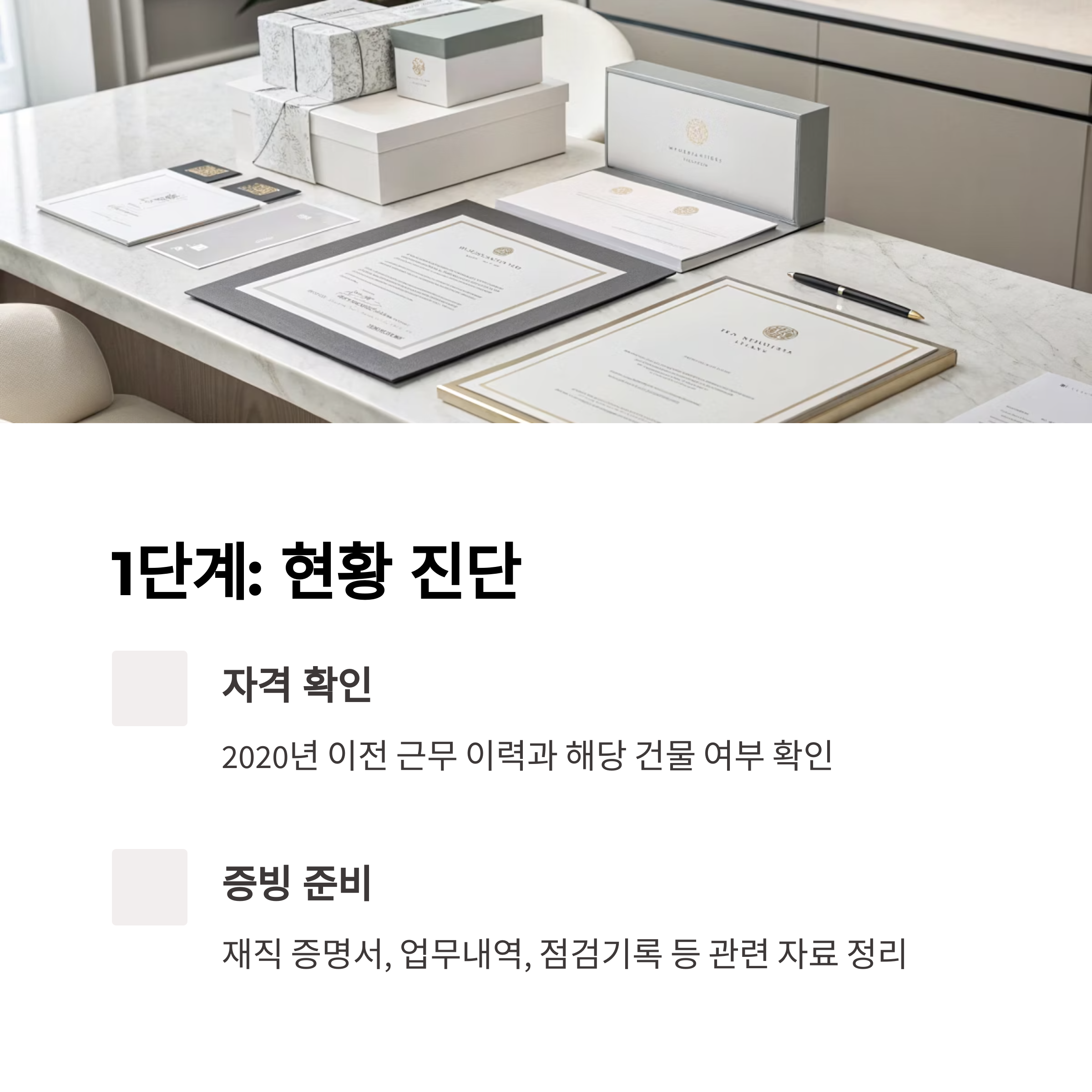 재직 증명서, 업무내역, 점검기록 등 관련 자료를 정리해두어야 합니다.