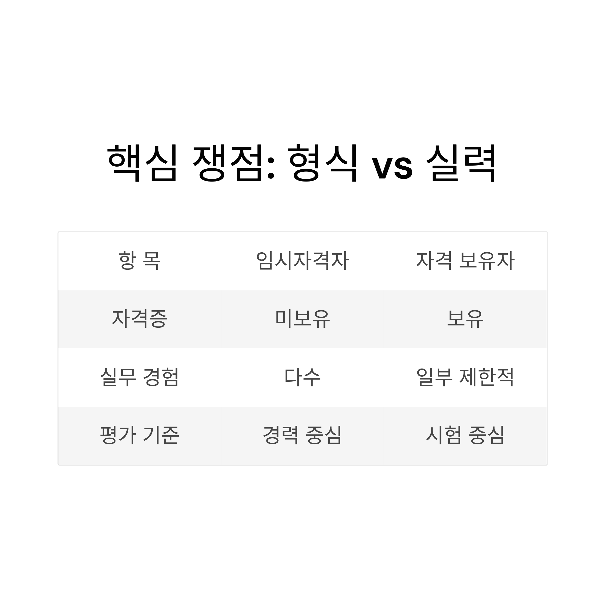 가장 치열한 쟁점: 형식적 자격 vs 검증 가능한 실력