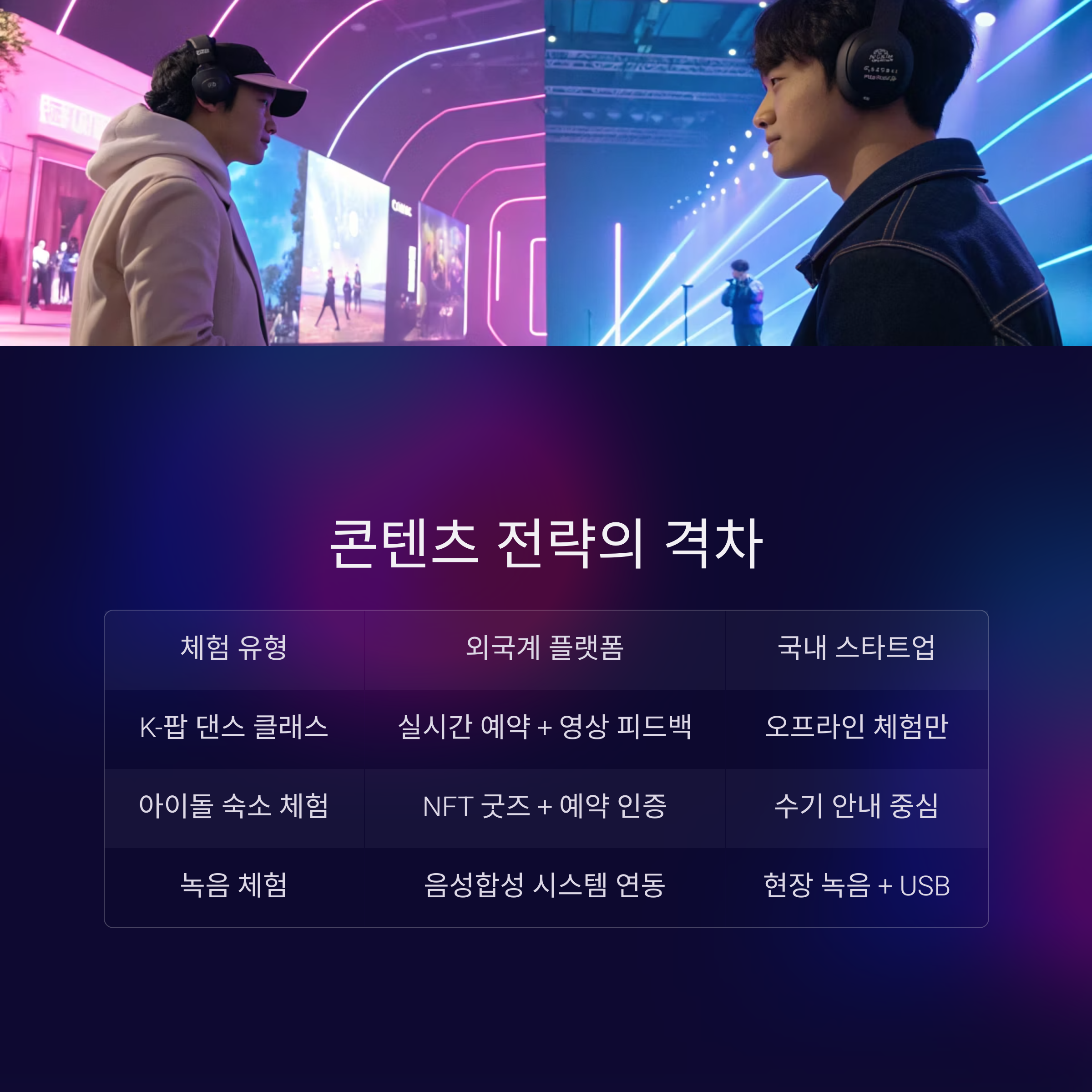 외국계 플랫폼은 기술 기반 몰입 설계, 예약 편의성, 디지털 확장성을 통해 상품 완성도를 높이는 반면, 국내 스타트업은 콘텐츠 원형만 보유한 채 운영 기술이 결여된 상태이다.