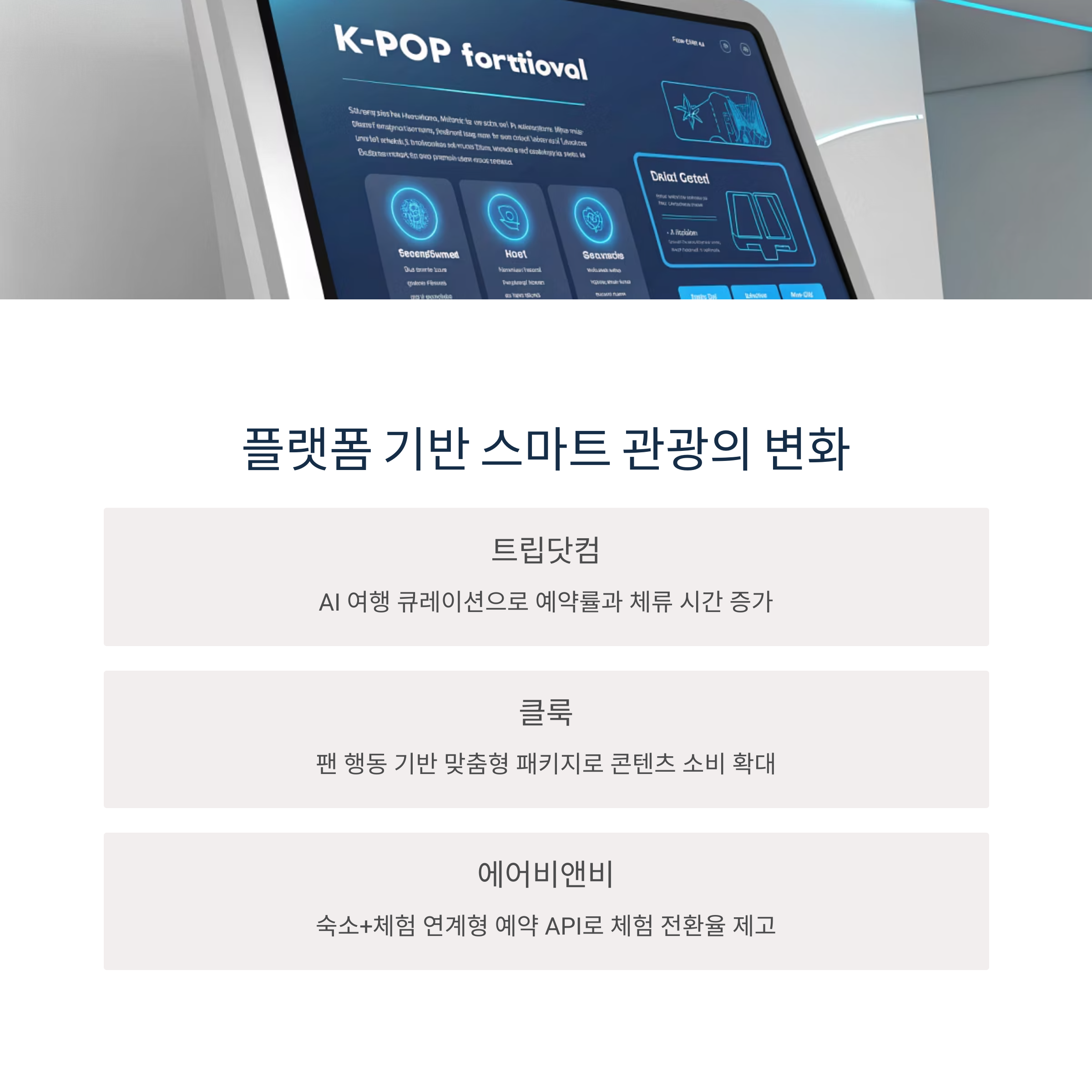 스마트 관광은 단순 기술 결합이 아닌, 콘텐츠 설계와 플랫폼 구조의 혁신에서 시작된다. 글로벌 OTA들은 K-콘텐츠를 중심으로 스마트화된 수익 모델을 구축 중이다.